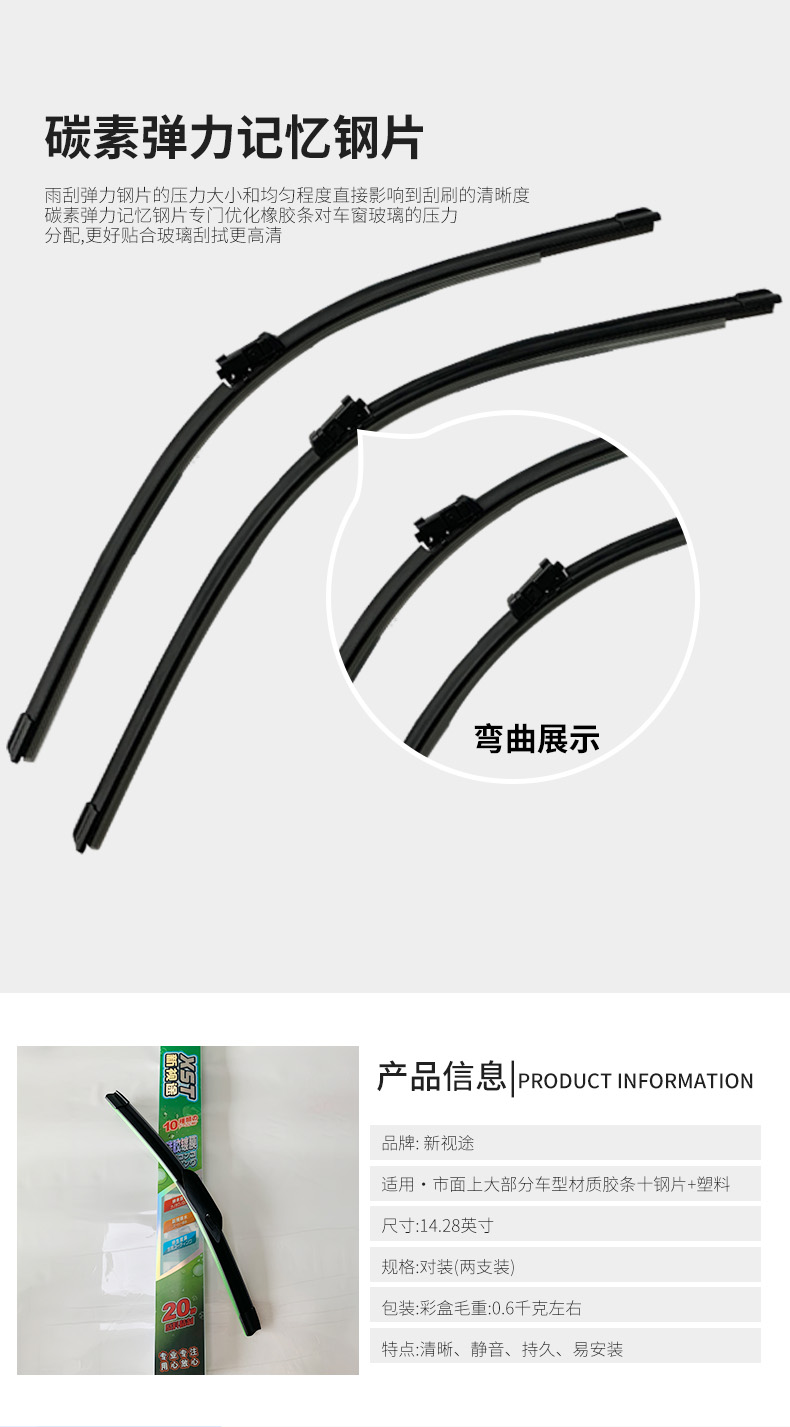新視途汽車配件有限公司針對汽車售后市場,潛心專業專注的研究硅膠鍍膜技術,專注改良、開發多款配方和工藝,多年來根據不同雨刷款型的需要,推出多系列通用和專用鍍膜膠條,目前結合最新的納米技術和工藝,再次推出最新的碳纖維鍍膜膠條,且采用德國進口原材料,有效提高產品在磨耗、靜音、鍍膜層耐久等性能,是普通雨刷數倍。